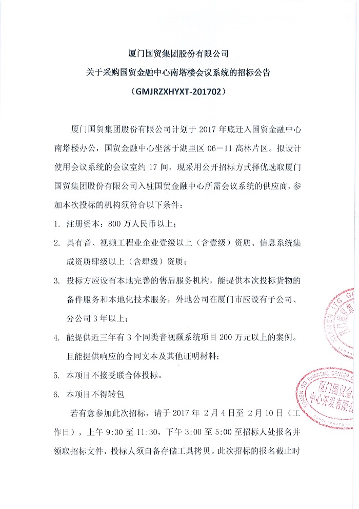 國貿(mào)金融中心會議系統(tǒng)的招標(biāo)公告