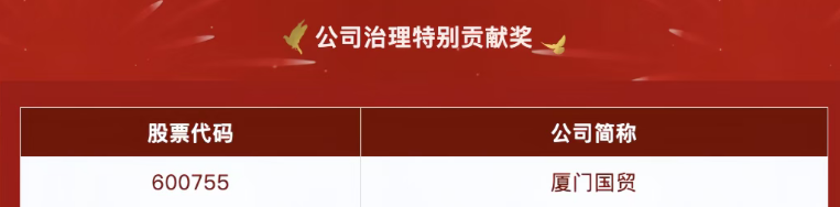 廈門國貿(mào)榮獲第二十屆 “金圓桌獎”之“公司治理特別貢獻(xiàn)獎”。